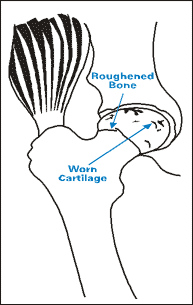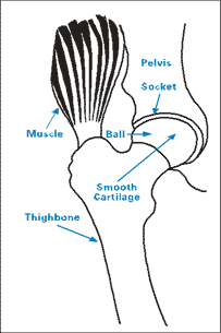 With a problem hip, the worn cartilage no longer serves as a cushion. As the diseased or damaged bones rub together, they become rough, and the resulting pain causes difficulty in walking. |