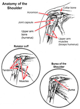 Most problems in the shoulder involve the muscles, ligaments, and tendons, rather than the bones. Athletes are especially susceptible to shoulder problems. In athletes, shoulder problems can develop slowly through repetitive, intensive training routines.